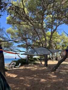 Zamislite da se nađete nekoliko metara iznad tla, u šatoru koji lagano njiše krošnja bora, dok se ispod vas prostire mirisna borova šuma i pogled na more. Naš šator na drvu pravo je malo utočište za one koji žele iskusiti prirodu iz drugačije perspektive – bilo na jedan dan ili jednu noć.